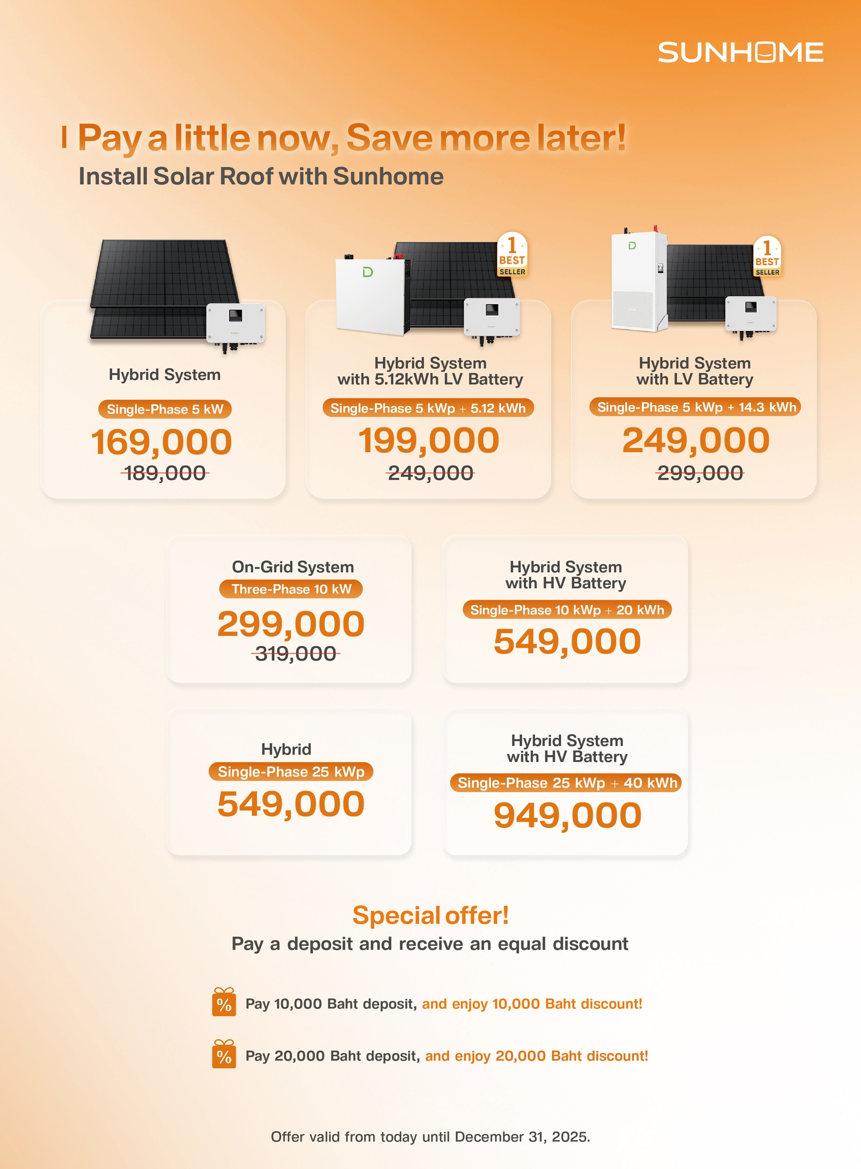 ติดโซลาร์วันนี้ ประหยัดยาวๆ กับโปรโมชั่นสุดคุ้มจาก Sunhome!